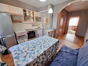 Сдадим семье 3-4 человека или паре без вредных привычек на длительный срок. Некурящие. Квартира с большими светлыми комнатами 19,4 +12,4 кв.м, застекленная лоджия. Квартира уютная, теплая, оснащена современной мебелью, техникой, плита электрическая, 2 спальных места, в наличии стиральная машина, холодильник. Санузел раздельный, теплый пол, есть ванная, боллер. Кухня просторная 10 кв.м. с новым холодильником и необходимой мебелью, дополнительно раскладной диван.