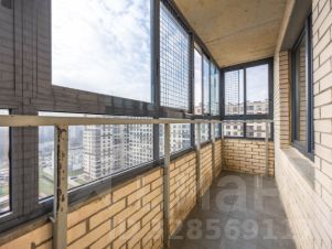 Очень большой просторный балкон с красивым видом на Смольный собор.
