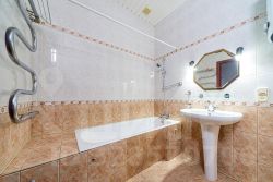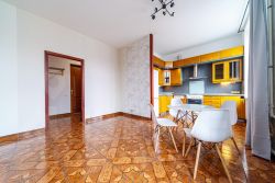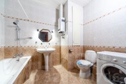 Комфортабельная планировка с очень просторной кухней-гостиной со спальным местом и спальней. Сан узел совмещенный. В комнатах пол - ламинат, в санузлах и в зоне кухни - плитка.