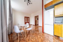 В квартире имеется мебель и техника: стиральная машина, микроволновка, газовая плита, холодильник, пылесос, 1 двуспальный диван. Интернет проведен. В комнате отсутствует кровать, поэтому можно установить вашу(либо две, если с ребенком), а также дополнительно любую необходимую мебель.