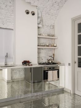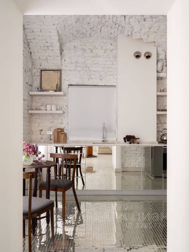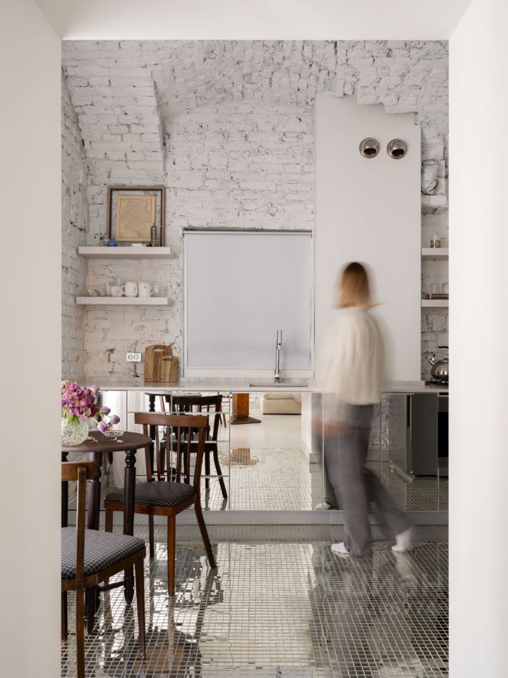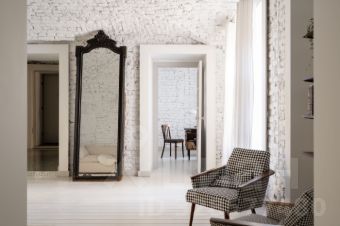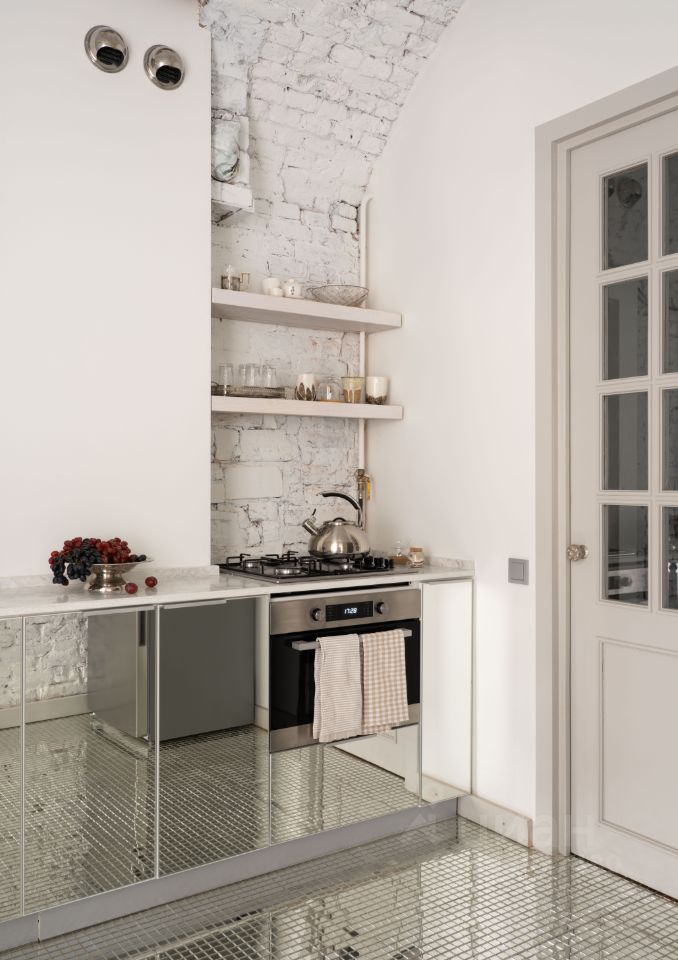 Дореволюционный дом, хранящий в своих стенах историю. Историю, которую высвободили при помощи дизайнерских решений и которой мы готовы поделиться с новыми жильцами. Зачищенные кирпичные стены и своды потолка добавляют лофтого настроения, одновременно с этим советская отреставрированная мебель добавляет живого уюта этой квартире. Это не просто помещение 100 квадратов, это настоящая живая квартира, готовая принять большую семью. Смелые решения открывают новые ощущения и по-своему позволят увидеть эту квартиру. Каждый найдет для себя сможет отметить уникальную деталь, бросить взгляд на зеркальную мозайку на полу и представить, что это зеркальная гладь водоема, а под ней скрывается еще дополнительная глубина.
