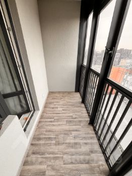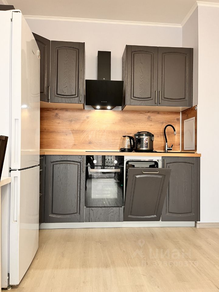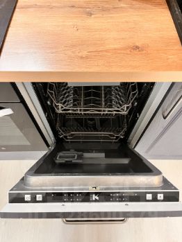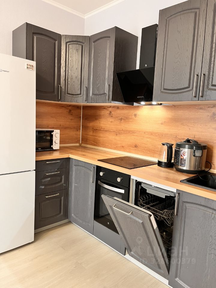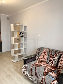 Квартира общей площадью 38,1 м2, плюс два балкона - открытый из кухни и большая остекленная лоджия с выходом из спальни (см. фото). Европланировка - большая кухня-гостиная и спальня меньшей площади. Квартира с ремонтом, всей необходимой мебелью и бытовой техникой. Жилая комната - 10 м2, в ней - двуспальная кровать, комод, стол. Кухня-гостиная площадью 19 м2 с кухонным гарнитуром, варочной поверхностью и духовым шкафом, холодильником, посудомоечной машиной, микроволновой печью, столом и стульями, стеллажом, диваном. Прихожая: здесь размещён большой шкаф для одежды. Санузел совмещенный: установлена ванна, унитаз, раковина и стиральная машина. Пол - кафель в санузле, ламинат в комнате и на кухне. Окна выходят на юг, юго-восток. Парковка во дворе дома плюс подземный паркинг.