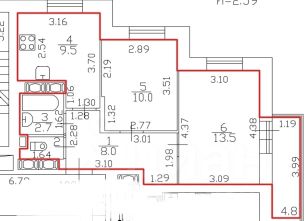 Общая площадь квартиры составляет 45 кв. м, жилая площадь — 23.5 кв. м, а кухня — 9.5 кв. м.