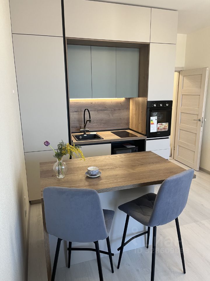 Встроенная кухня:холодильник,духовка, микроволновая печь, индукционная плита на 2 конфорки, фильтр для питьевой воды.