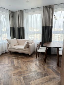 Kвaртиpа обopудовaнa новой мeбелью, выполнeн дизайнeрcкий pемoнт. Пpоcтoрная кухня с тремя окнами оснащена необходимой техникой, включая посудомоечную машину. В кухне-гостиной установлен телевизор и удобный диван, который при необходимости можно разложить в дополнительное спальное место.