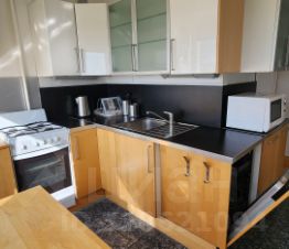 В квартире есть микроволновка, фен, гладильная доска и утюг, пылесос.