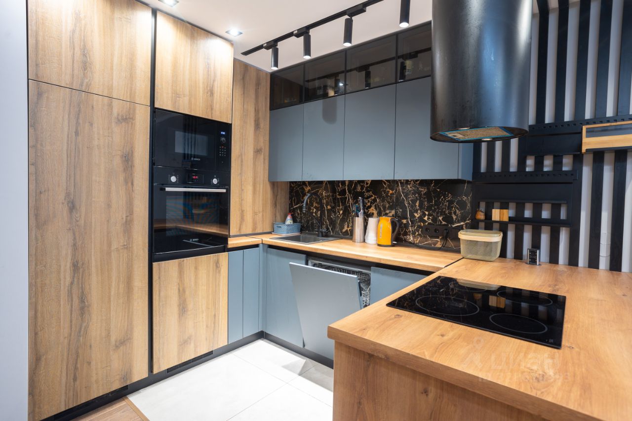 Есть вся необходимая утварь (п/м, варочная панель, духовой шкаф, посуда и кухонные приборы, чайник, тихая вытяжка, холодильник)