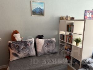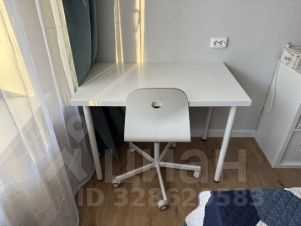 Несмотря на первый этаж, комната светлая. Есть двуспальная кровать с почти новым ортопедическим матрасом, раздвижной диван, огромный шкаф-купе во всю стену, стеллажи, два рабочих стола, один компьютерный стул, телевизор.