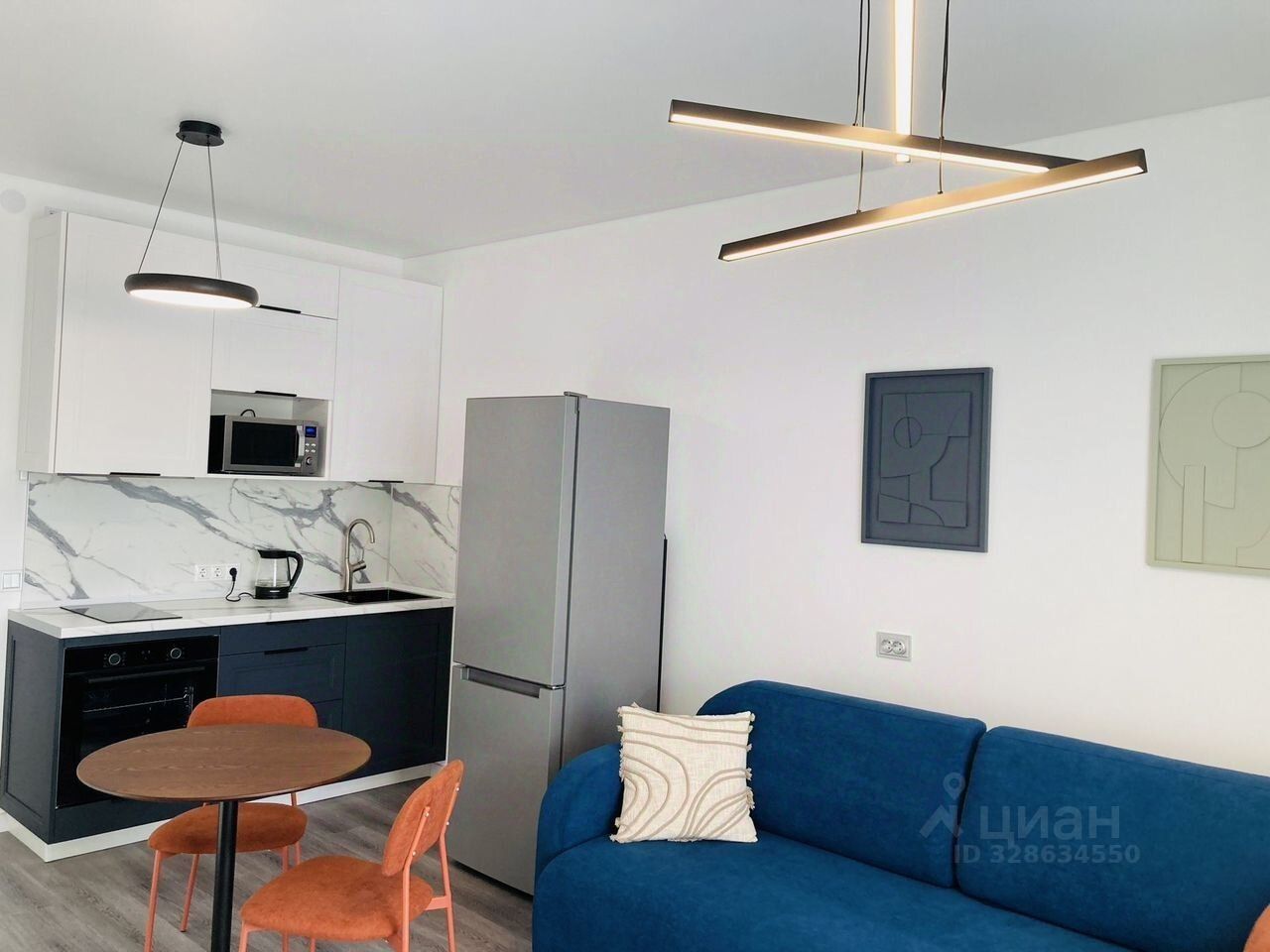 Есть домофон с функциями системы "умный дом". В комнате установлен удобный диван для комфортного отдыха, вместительный 3х створчатый шкаф с антресолью.В прихожей обувная тумба-скамейка и 2х створчатый шкаф с антресолью. Дом построен по кирпично-монолитной технологии, что гарантирует отличную тепло- и звукоизоляцию. Вход на территорию комплекса осуществляется через центральную входную группу, в которой оборудовано лобби, колясочная, пост охраны.Удобное расположение и транспортная доступность:Метро в шаговой доступности (12 минут).