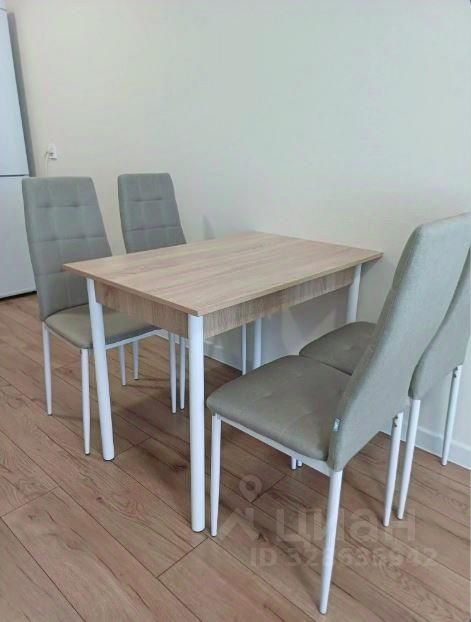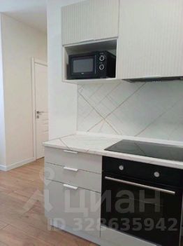 В спальне установлена двуспальная кровать и шкаф. В просторной кухне-гостиной имеется кухонный уголок, обеденная группа, холодильник, варочная панель, СВЧ, духовой шкаф.