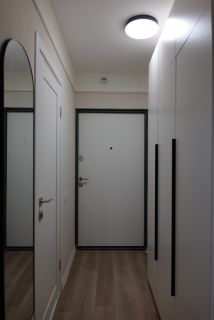 Интерьер выполнен в современном минималистичном стиле: светлые тона, аккуратные линии и продуманные детали создают ощущение простора и комфорта. Квартира полностью укомплектована новой техникой и мебелью — можно заехать и сразу жить.