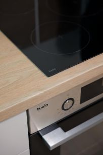 Кухонная зона оснащена всем необходимым: варочная панель, духовой шкаф, посудомоечная машина и вместительный холодильник. Вся техника новая и качественная.