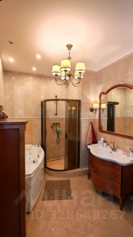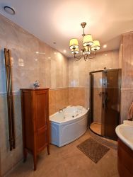 Просторная ванная с душевой кабиной и джакузи с гидромассажем и теплым полом.