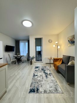 Сдаётся стильная студия с двумя окнами и зоной для релакса в новом доме 2025 года постройки, расположенная на 5 этаже 13-этажного здания. Общая площадь квартиры составляет 29 кв. м, из которых 15 кв. м — жилая площадь и 5 кв. м — кухня.