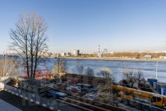 Это видовая квартира — из кухни-гостиной и спальни открывается живописный вид на Неву! Утренний свет на воде и вечерние огни города станут частью вашей повседневной жизни.