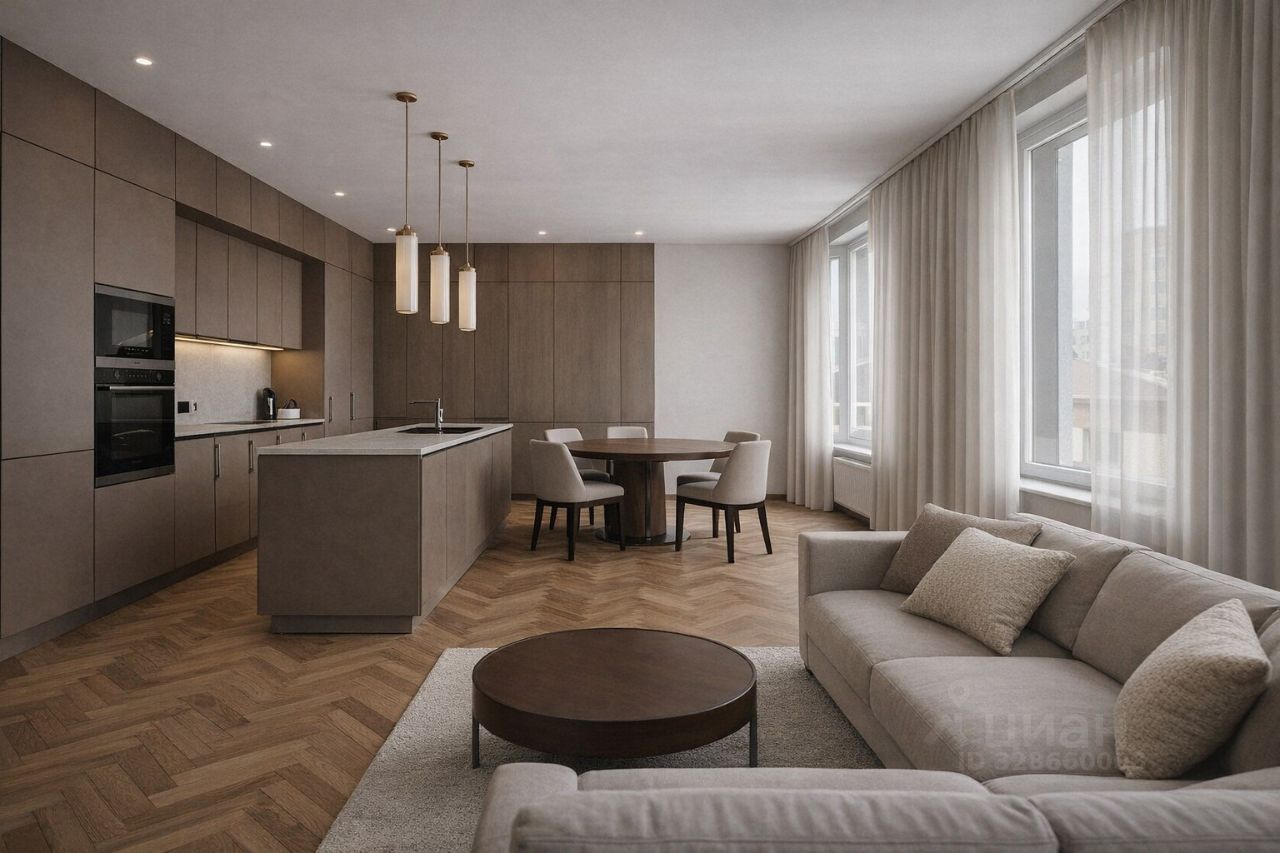 Квартира выполнена с дизайнерским ремонтом, что придаёт ей уникальный стиль и уют. В каждой комнате есть необходимая мебель, а на кухне площадью 22 кв. м — всё для кулинарных экспериментов. Современная техника, включая кондиционер, холодильник, телевизор, стиральную и посудомоечную машины, сделает ваше проживание максимально комфортным. В квартире два совмещённых санузла, в одном из которых установлена душевая кабина, а в другом — ванна.
