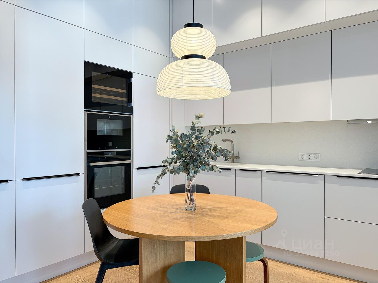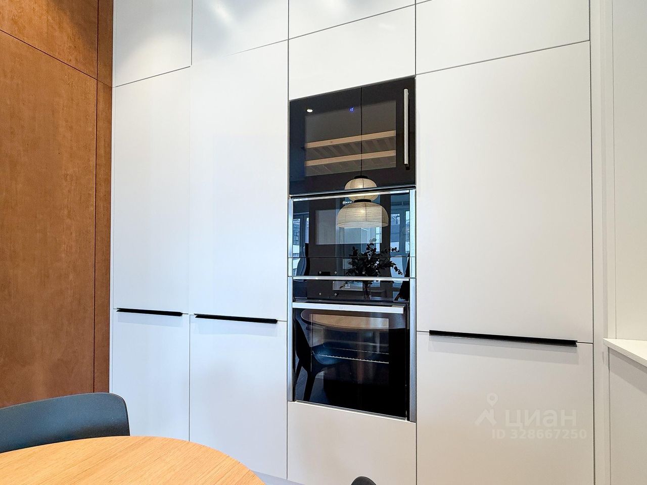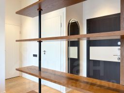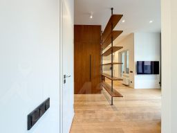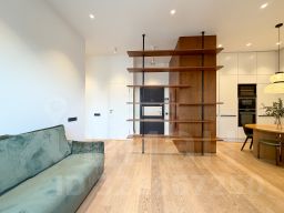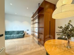 • Интерьер выполнен в современном минималистичном стиле с использованием качественных материалов: натуральное дерево, встроенная мебель, продуманное освещение. Высокие потолки!