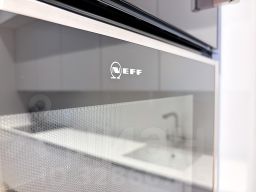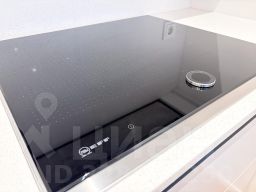 Квартира полностью укомплектована: встроенная кухня с техникой: посудомоечная машина, микроволновая печь, винный шкаф, духовой шкаф с функцией су-вид и пароваркой, мощная вытяжка.