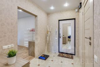 В коридоре есть комод для хранения вещей, вешалка для верхней одежды. Слева от входа-совмещенный санузел с ванной, широкой раковиной с местом для хранения, туалетом. Полы с подогревом.