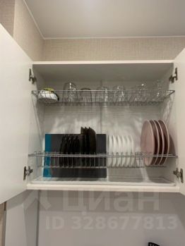 Далее, прямо расположена кухня с кухонным гарнитуром, встроенной плитой на 2 комфорки, стиральной машиной и холодильником. Духовки нет, но как бонус-есть кофемашина. Также, установлен фильтр с питьевой водой. Диван раскладывается, поэтому можно использовать его как спальное место.