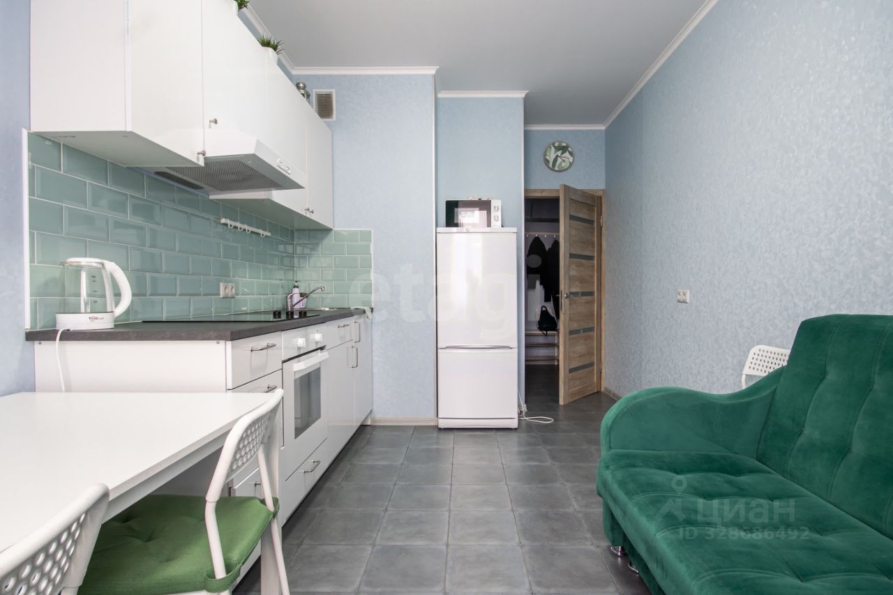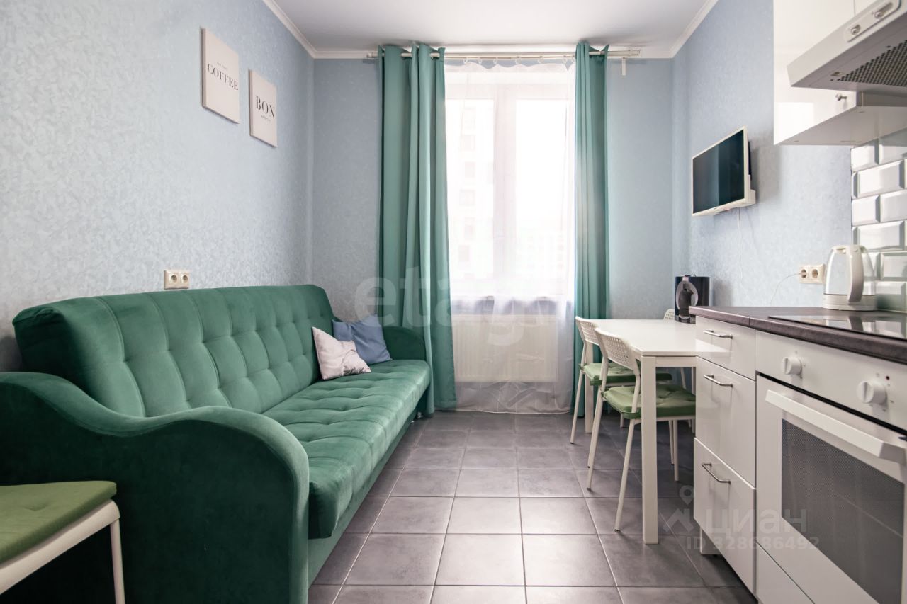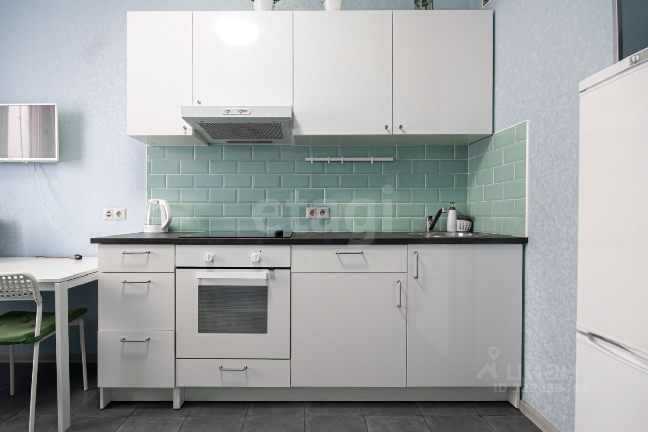 Планировка квартиры включает в себя просторную кухню, изолированную спальню и совмещенную ванную комнату.