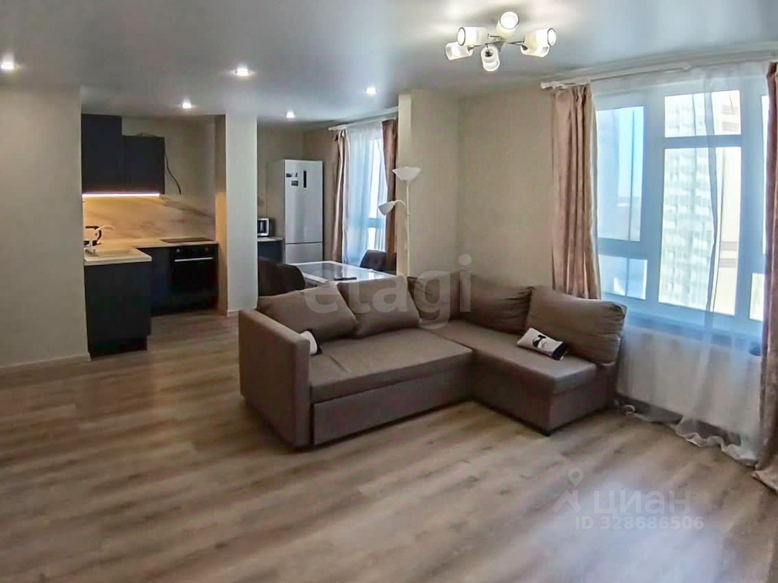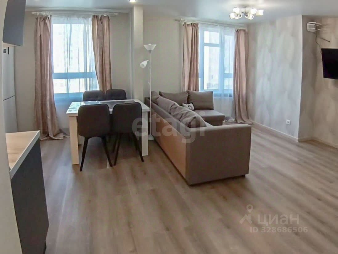 Большая кухня-гостиная с раскладывающимся диваном, 2 изолированных спальни, совмещенная ванная комната.