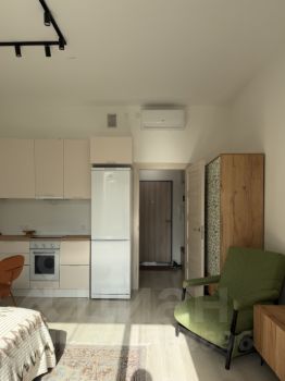 Сдам от собственника студию в ЖК бизнес-класса Притяжение на длительный срок, без комиссии. Есть вся необходимая мебель и техника. Возможно проживание с небольшой собакой.