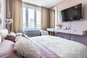 Квартира с евроремонтом, что создает современную и комфортную атмосферу. В комнате и на кухне есть вся необходимая мебель. Из техники — посудомоечная и стиральная машины,духовой шкаф, микроволновка, холодильник и смарт телевизор в каждой комнате. Ванная комната оборудована ванной. Окна выходят на улицу, а из лоджии открывается прекрасный вид.