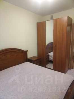 В спальне установлен спальный гарнитур- широкая кровать, две тумбочки, шкаф, телевизор.