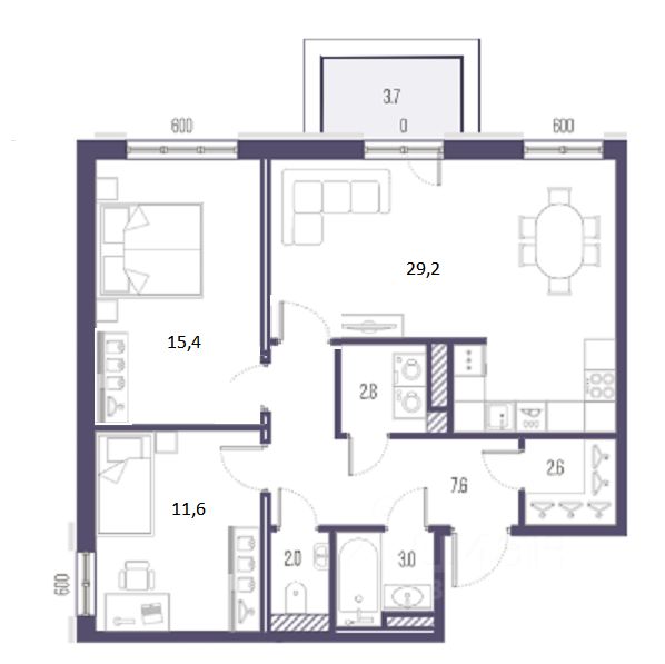 В квартире есть все необходимое для комфортного проживания: стильная мебель в комнатах и на кухне, современная техника, включая кондиционер, холодильник, посудомоечную и стиральную машины, а также телевизор. Удобная планировка включает три отдельных санузла, что значительно упрощает жизнь многим жильцам. На балконе можно наслаждаться утренним кофе или вечерними закатами.