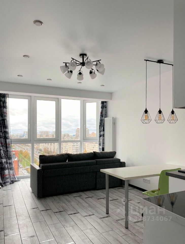 Сдаётся видовая студия с панорамными окнами в современном жилом комплексе, расположенном в пешей доступности от станции метро "Дунайская". Квартира общей площадью 26,5 кв. м (31 м2, тк присоединен балкон) находится на 13 этаже 26-этажного монолитного дома, построенного в 2019 году. Высокие потолки 3,19 метра создают ощущение простора и света.