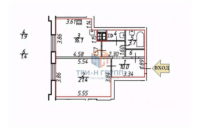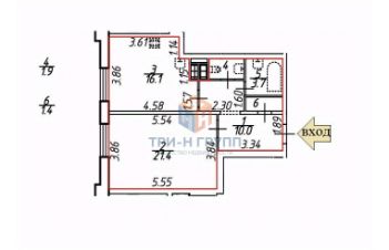 Квартира площадью 54.5 кв.м.; высота потолка 3.1 метра.
