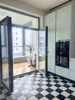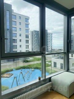 Просторная лоджия c панорамными окнами, живописный вид на Финский залив.