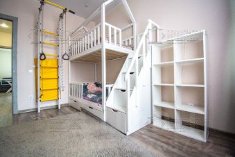 - во второй комнате детская двухъярусная кровать, шведская стенка