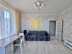 Пространство общей площадью 70 м продумано для комфортной жизни: 3 изолированные комнаты с выходом на застекленную лоджию с прекрасным видом из одной спальни, просторная кухня и раздельный санузел. Панорамные окна верхнего этажа наполняют интерьер солнечным светом и открывают прекрасный вид на город. Есть вся необходимая мебель и техника, большое количество мест для хранения.