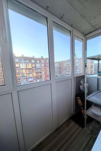 -Застекленный балкон с дополнительным местом для хранения.