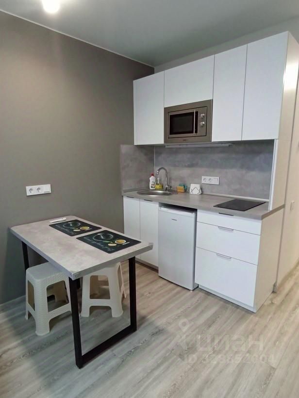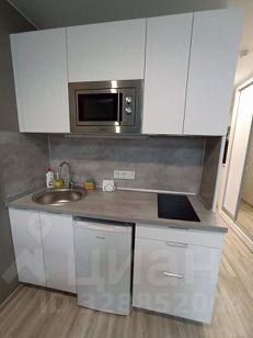 Квартира-студия полностью укомплектована. На кухне микроволновая печь, плита, посуда . В ванной комнате установлена полноценная ванная, вместительная стиральная машина. Есть утюг, гладильная доска, сушилка.