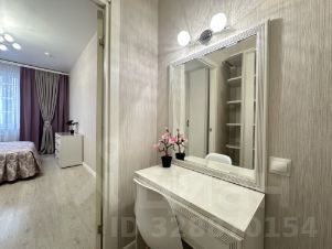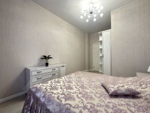 Апартаменты состоят из нескольких помещений - спальня с двуспальной кроватью 160 см на 200 см, платяным шкафом с зеркалами, комодом и двумя прикроватными тумбочками, кухня-гостинная с современным двуспальным диваном (спальное место 160 см на 200 см), современной белоснежной стенкой, телевизором SONY. Кухня укомплектована обеденной группой холодильником , индукционной варочной панелью, духовым шкафом, микроволновой печью, вытяжкой. При входе полноценная прихожая с зеркальным шкафом и обувницей. В помещении между комнатами - вместительный шкаф с зеркалами, туалетный столик. Имеется лоджия с панорамным остеклением, из которой с 12 этажа открывается прекрасный вид на Пулковский парк.