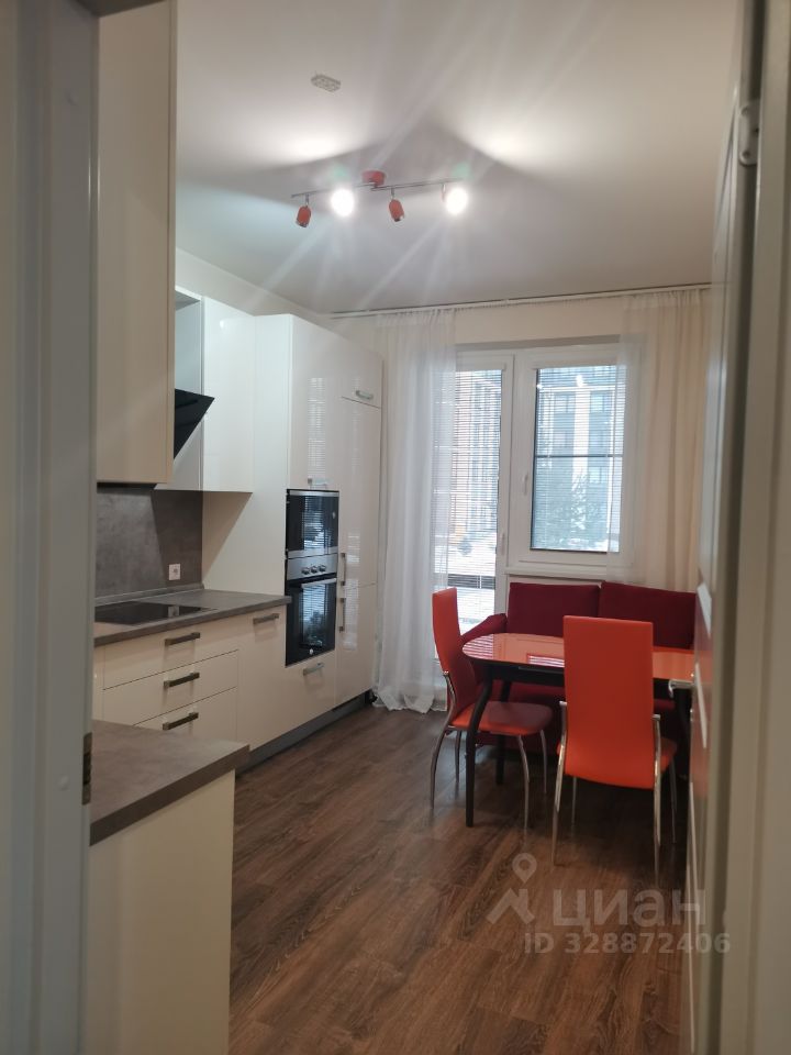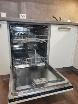 В квартире сделан современный евроремонт. Обстановка уютная и комфортная, в комнатах и на кухне есть необходимая мебель. Оснащение техникой включает встроенный холодильник, микроволновую печь посудомоечную и стиральную машины, духового шкафа, вытяжки, а также телевизор. Техника от производителя Bosch. Планировка квартиры продумана для максимального комфорта проживания.