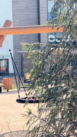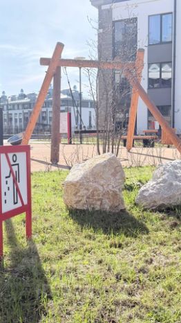 Территория: два парка — один для философских прогулок, другой для спортивных подвигов. Скамейки, фонтаны, роллердром и скалодром — скучно не будет!