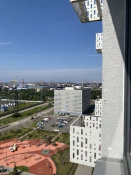 - Спальня 10,1 м кв. с большой кроватью и удобным новым матрасом и шкафом, также с окном с видом на залив, также с правой стороны видна башня "Газпром".