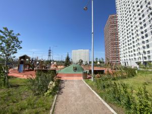 Отличная современная детская площадка, школа и детский сад во дворе.