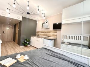На длительный срок сдаётся стильная, уютная и полностью оборудованная студия на 13-м (последнем!) этаже современного апарт-отеля в Санкт-Петербурге.