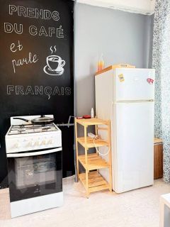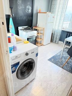 Для проживания есть все необходимое: газовая плита, стиральная машина, холодильник, большая двуспальная кровать с хорошим матрасом, рабочее место для работы за компьютером. Подключен быстрый интернет SkyNet, роутер также остается в квартире.