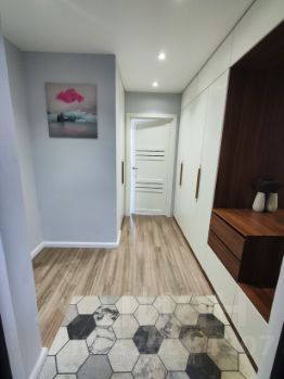 В квартире две полноценные спальни, просторная кухня-гостиная с телевизором и диваном, а также отдельная комната, с минимумом мебели. Продуманная планировка и дизайнерский ремонт создают комфортную и стильную атмосферу для жизни.