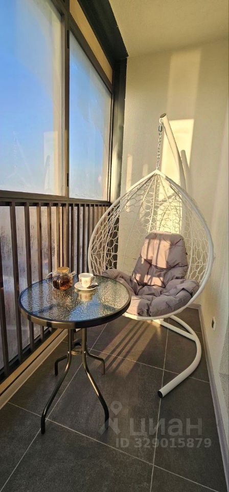 Просторная лоджия с прекрасным видом на город для уютных посиделок с книгой за чашкой кофе.
