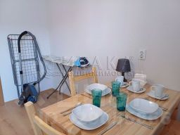 В прихожей стоит просторный шкаф для одежды Ikea пакс, а в комнате большой комод. Для быстрой уборки в квартире есть пылесос и робот-пылесос. Комфортабельная, полностью укомплектованная кухня: стиральная машина, посудомоечная машина, встроенный холодильник, духовой шкаф и электрическая плита, свч. Также есть все необходимое для приготовления пищи: набор посуды, столовые приборы, электрический чайник,а также постельные принадлежности.
