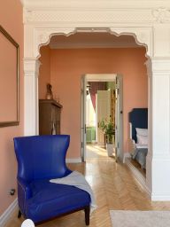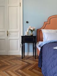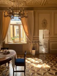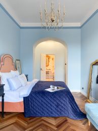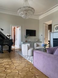 Просторная четырёхкомнатная квартира в историческом центре Санкт-Петербурга в доме, построенном по проекту архитектора Дютеля Ю.О. в 1861 году. Здание находится в одном из самых престижных мест культурной жизни северной столицы рядом с Исаакиевским собором, Мариинским дворцом, Манежем и уютными изгибами набережной Мойки. С балкона открывается вид на Исаакиевскую площадь, Александровский парк и Адмиралтейство.