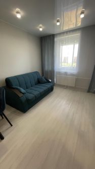 В квартире сделан евроремонт, все обставлено и готово к проживанию. Просторная кухня площадью 18 кв. м оборудована всей необходимой мебелью и техникой: холодильник, телевизор и стиральная машина. В комнате также есть вся необходимая мебель для комфортного проживания. Санузел совмещенный, с установленной ванной. На балконе можно наслаждаться утренним кофе или вечером отдохнуть после рабочего дня.