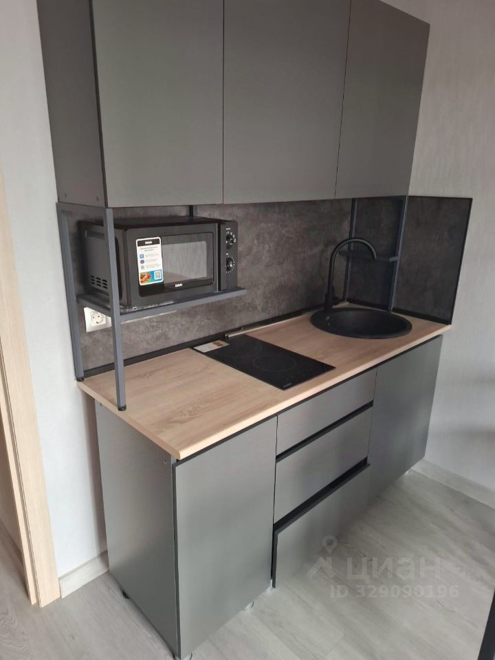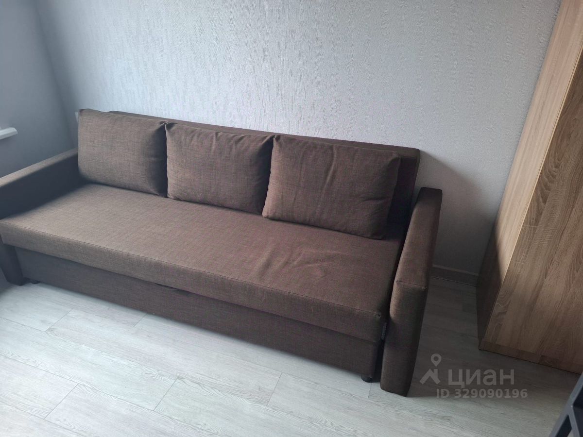 В квартире сделан качественный евроремонт. Пространство студии организовано функционально: уютная зона отдыха и небольшая кухня площадью 5 кв.м. Квартира полностью меблирована: есть мебель как в комнате, так и на кухне. Для вашего комфорта установлены холодильник, телевизор и стиральная машина. Санузел совмещенный и оборудован душевой кабиной. Окна квартиры выходят на улицу, что обеспечивает много дневного света.